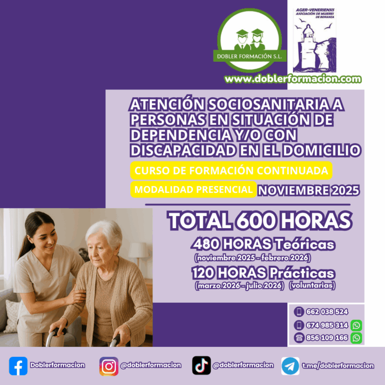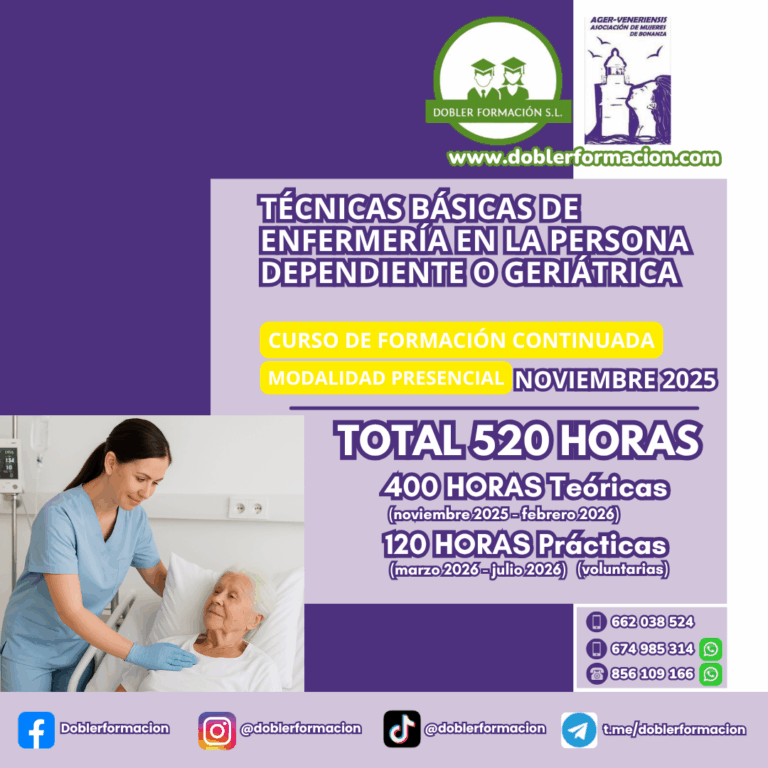 “TÉCNICAS BÁSICAS DE ENFERMERÍA EN LA PERSONA DEPENDIENTE O GERIÁTRICA”. HORARIO: MARTES Y VIERNES DE 09.30-11.30 HORAS. INICIO DEL CURSO...
