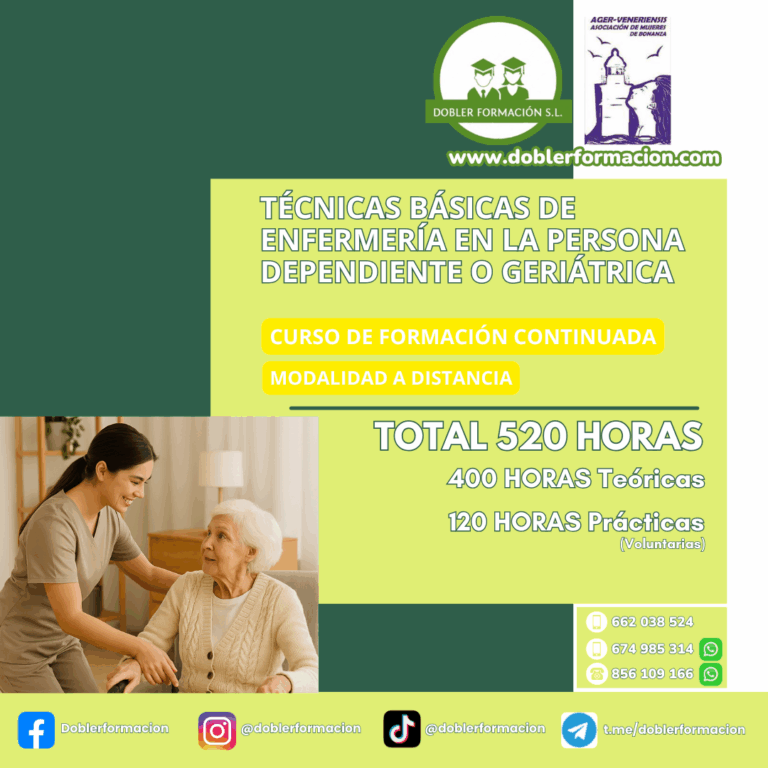 “TÉCNICAS BÁSICAS DE ENFERMERÍA EN LA PERSONA DEPENDIENTE O GERIÁTRICA”. 520 HORAS (400 HORAS TEÓRICAS + 120 HORAS PRÁCTICAS) INTRODUCCIÓN: ...