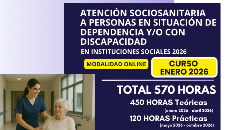 “ATENCIÓN SOCIOSANITARIA A PERSONAS EN SITUACIÓN DE DEPENDENCIA Y/O CON DISCAPACIDAD EN INSTITUCIONES SOCIALES”. MODALIDAD ONLINE. ENERO 2026.