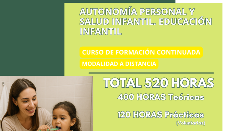 AUTONOMÍA PERSONAL Y SALUD INFANTIL. EDUCACIÓN INFANTIL. 520 HORAS. MODALIDAD A DISTANCIA. 2025.