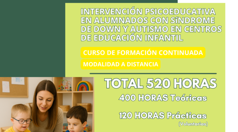 INTERVENCIÓN PSICOEDUCATIVA EN ALUMNOS CON SÍNDROME DE DOWN Y AUTISMO EN CENTROS DE EDUCACIÓN INFANTIL. 520 HORAS. MODALIDAD A DISTANCIA. 2025.