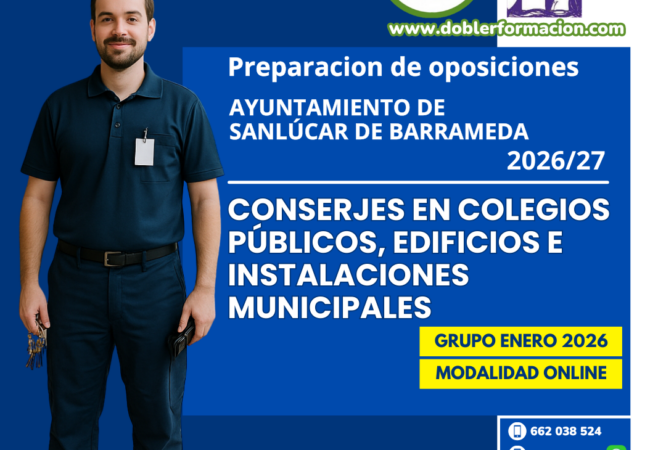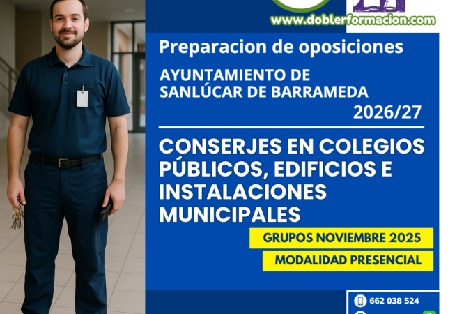 NUEVO CURSO PREPARACIÓN OPOSICIONES CONSERJES EN COLEGIOS PÚBLICOS, EDIFICIOS E INSTALACIONES MUNICIPALES DEL AYUNTAMIENTO DE SANLÚCAR DE BARRAMEDA 1. ¿QUÉ REQUISITOS NECESITA CUMPLIR LA PERSONA ASPIRANTE? Para ser admitidas, las...